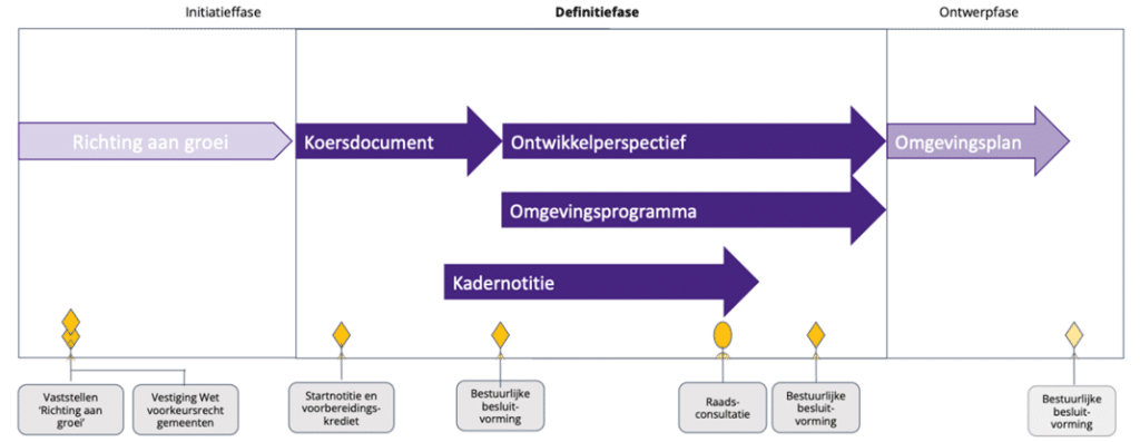 Als de gemeenteraad akkoord gaat, werken we verder aan de ontwikkeling van de wijk. Zie het schema hieronder: