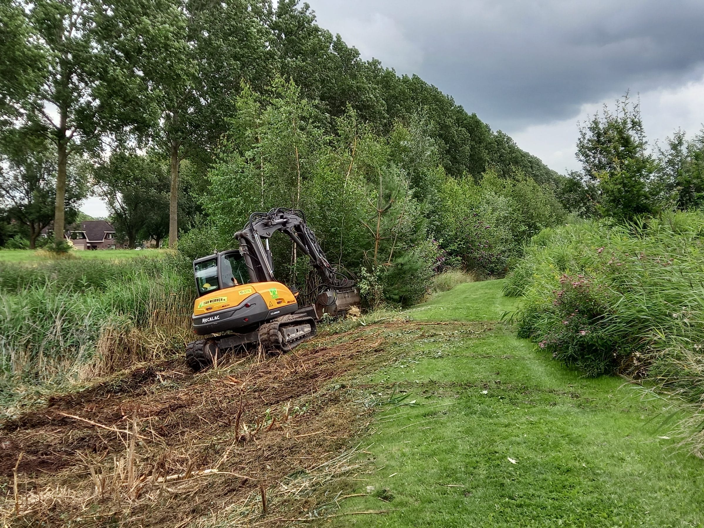 De commissaris Beheer & Onderhoud heeft in overleg met SBA en de werkgroep Natuur & Milieu besloten in te grijpen. Dus is de firma van Werven nu bezig met een grote rigoureuze opruimactie, een inhaalslag om alles in een keer te rooien met zwaar materieel. Wanneer die hoge begroeiing weg is zal er nieuw gevarieerd groen voor terugkomen zodat er weer normaal onderhoud gepleegd kan worden. Dat betekent dus weer jaarlijks 1/3 maaien en dat mag dan in de zomer (na het broedseizoen).