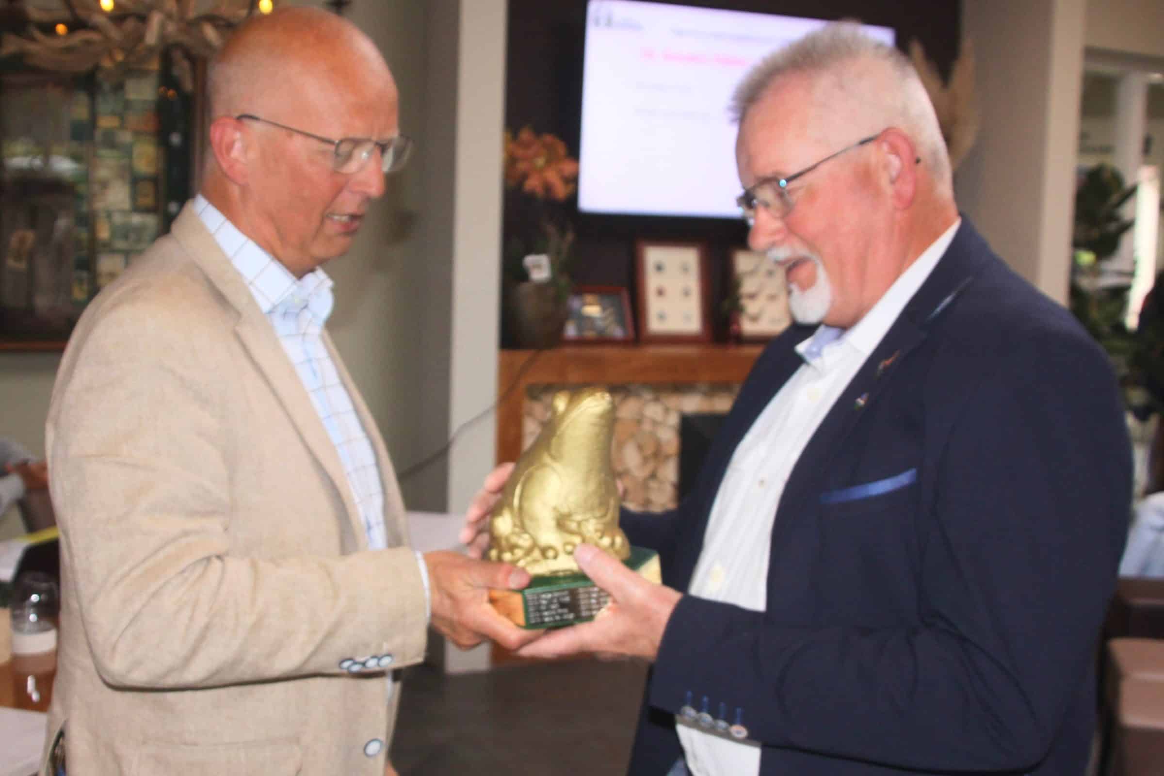 Voorzitter Jan Haasnoot van de golfclub heeft Ruud Mutters tijdens de voorjaars ALV op persoonlijke titel verrast met de Gouden Kikker. Met de Gouden Kikker worden leden onderscheiden die opvallend hebben bijgedragen aan de ontwikkeling van de vereniging.