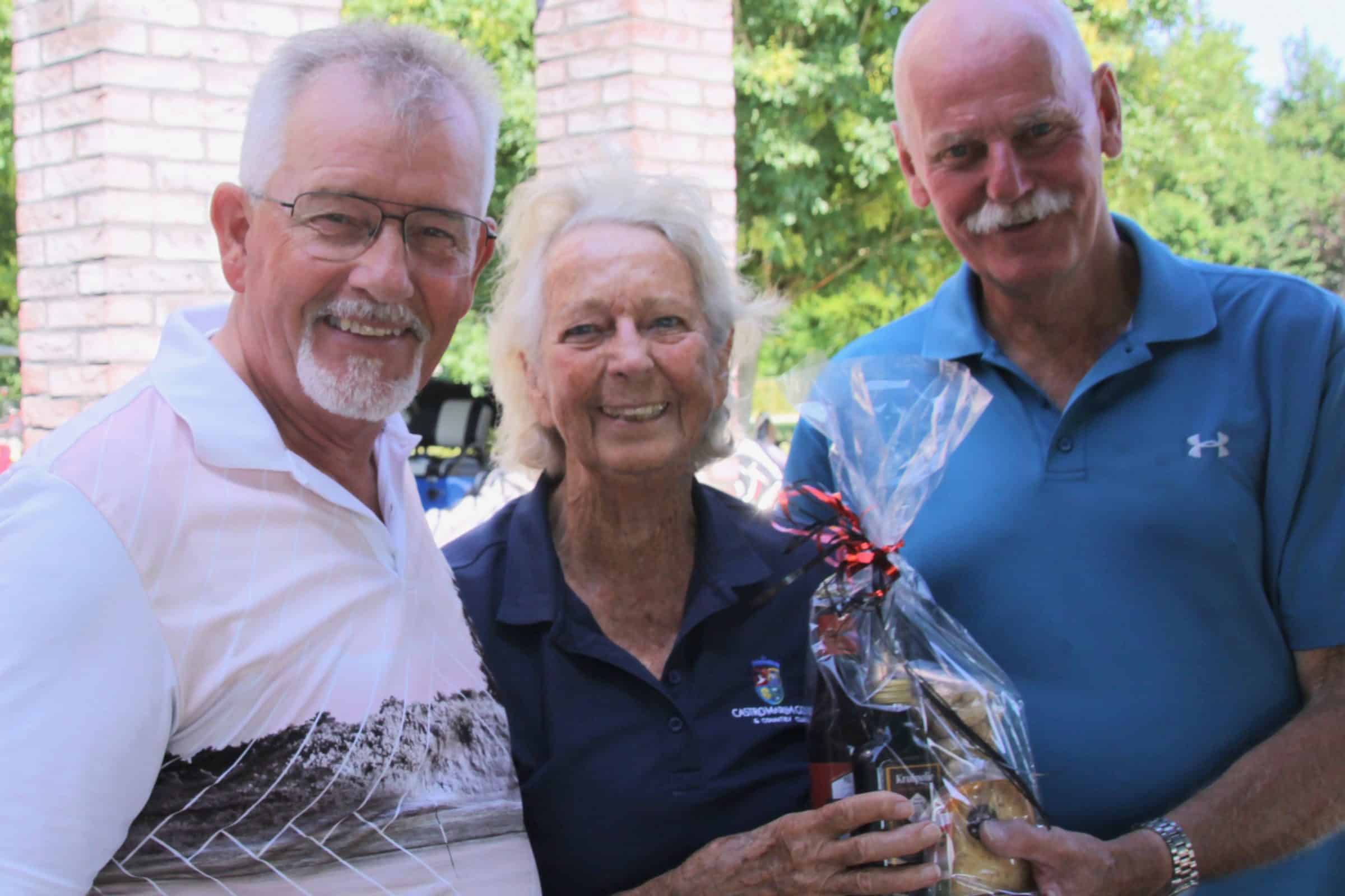 Winnares MarieLou Broeshart geflankeerd door de wedstrijdleiders Ruud Mutters (l) en Hans Verhoog.
