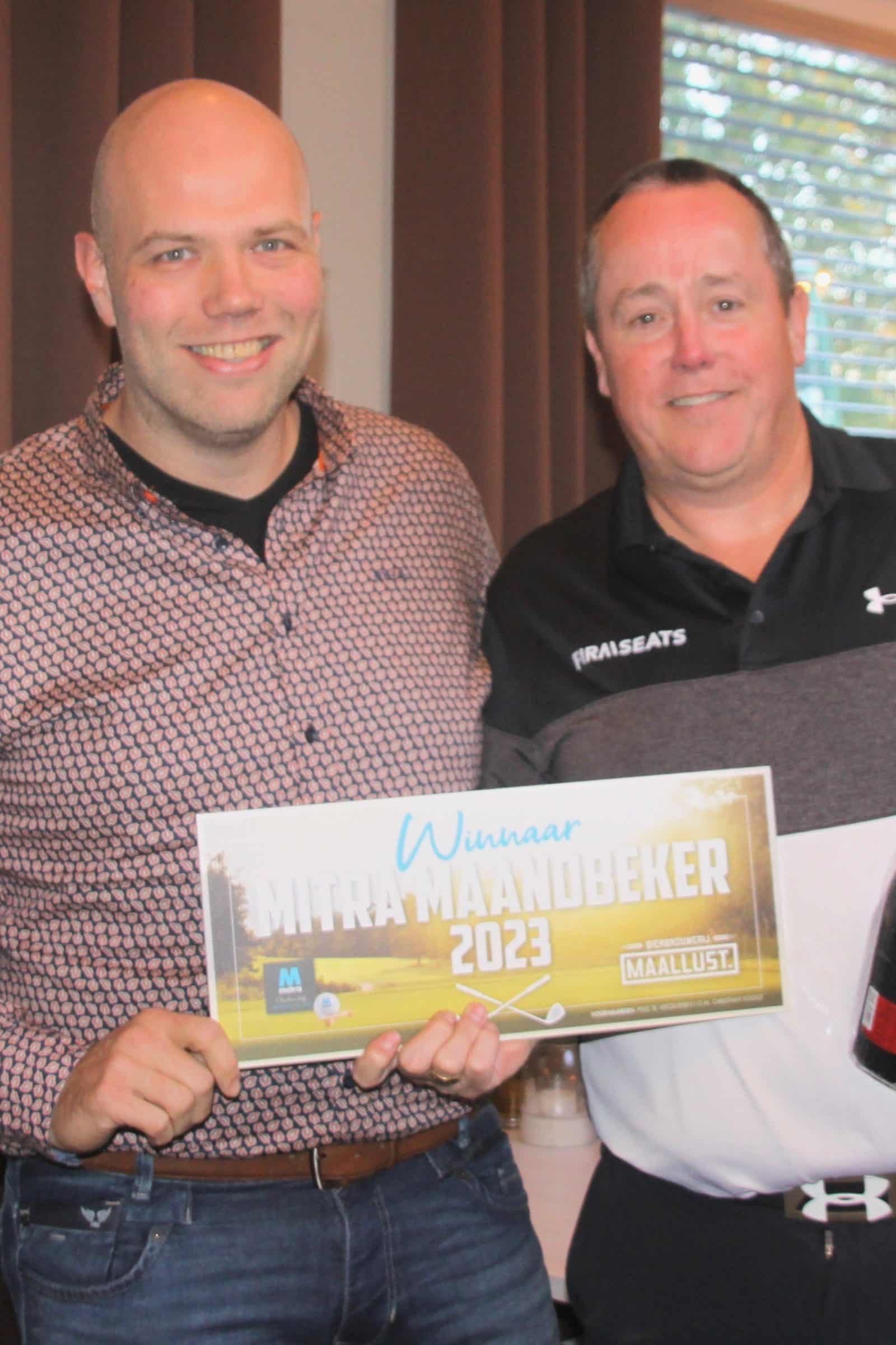 De dagwedstrijd bij de lagere handicappers werd gewonnen door Aart Lijs (hcp 12.2) die met 34 Stablefordpunten het clubhuis binnenkwam. Aart verzekerde zich daarmee van de titel Golfer van de Maand. Bij de hogere handicappers ging die titel naar Ben Peters (hcp 19.5). Ook hij finishte met een score van 34 Stablefordpunten. Aan de totale Mitra Maandbekercompetitie 2023 werd door 98 dames en heren meegespeeld.