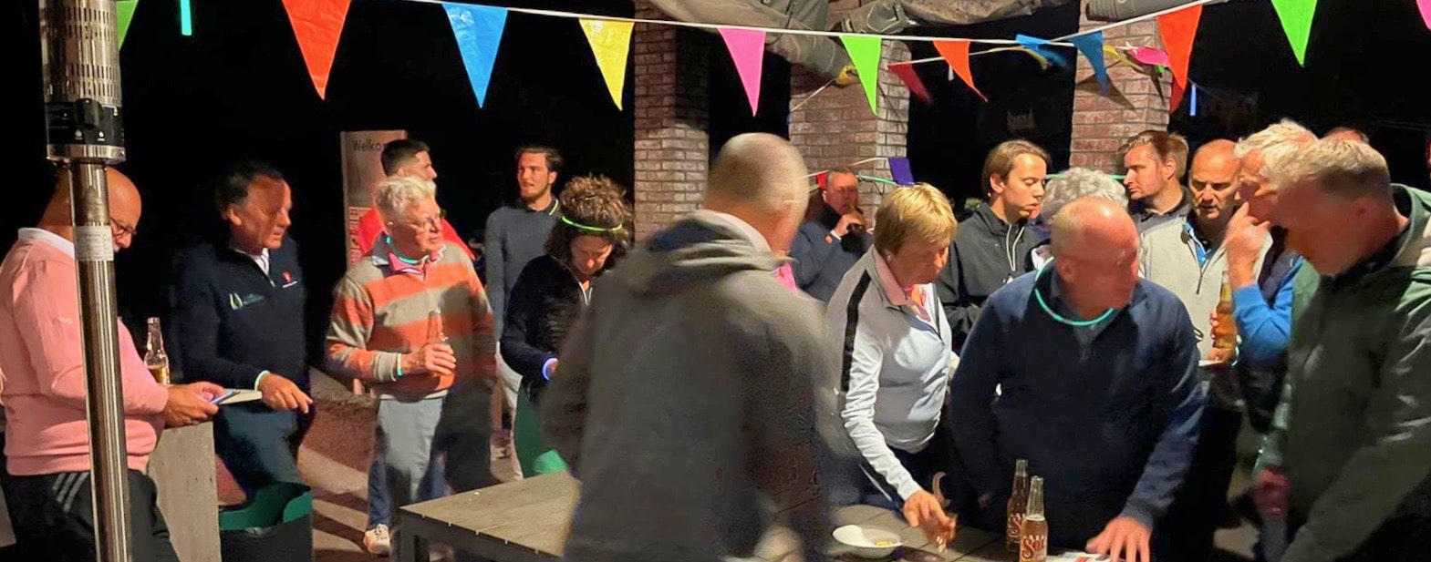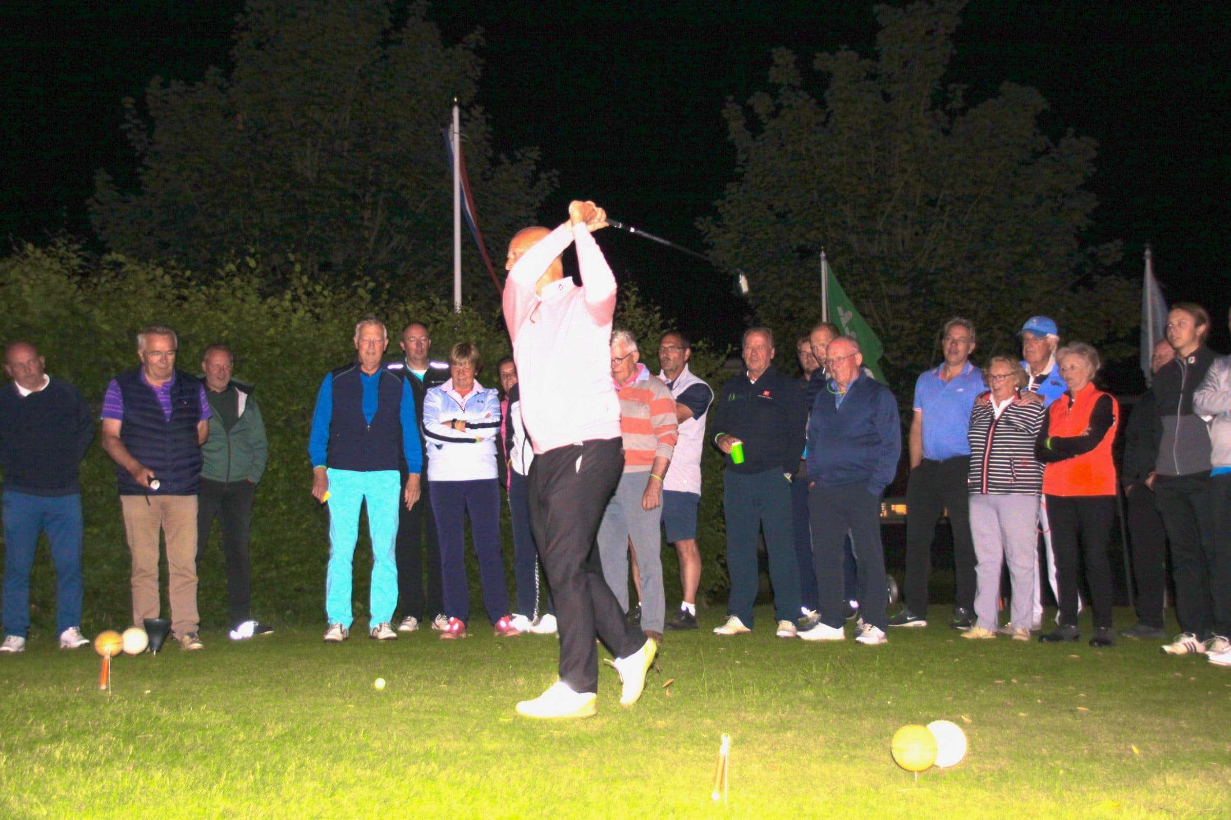 De lustrumweek is de afgelopen nacht op een spraakmakende manier officieus van start gegaan met een Midzomernachtwedstrijd. Om iets na 24.00 uur sloeg voorzitter Jan Haasnoot met een schitterende afslag op hole 1 de eerste bal weg. Daarmee werd een oude traditie in ere hersteld. Ook in de beginjaren van de club stond met regelmaat een midzomernachtwedstrijd op de kalender. Enige verschil met nu waren waarschijnlijk de led-balletjes, de breaklights en de glowsticks waarmee de vaak geïmproviseerde afslagplaatsen werden gemarkeerd. De wedstrijd was – in het kader van de lustrumweek – georganiseerd door de Mixed Fridaycommissie die al eerder van plan was nachtwedstrijden te houden. Vanwege de coronapandemie moest dat telkens worden afgelast. Aan deze nachtwedstrijd, die over 9 holes werd gespeeld, deden enkele tientallen leden mee. Zij werden met soep en stokbrood op het terras van De Vier Seizoenen ontvangen, waarna lustrumvoorzitter Jan de Vries op de tee van hole 1 nog tekst en uitleg gaf voordat de wedstrijd begon. De resultaten worden aan het eind van de feestweek bekendgemaakt. (HdJ)