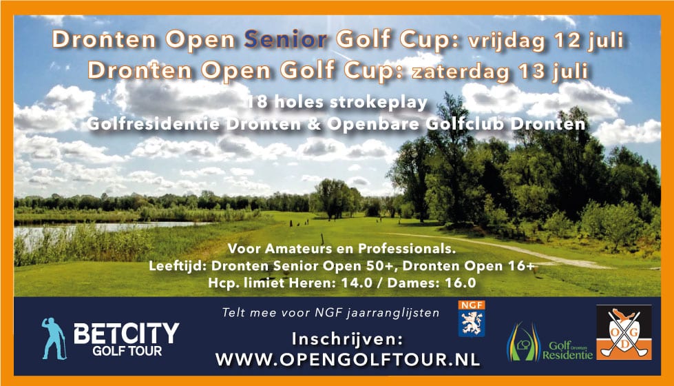 Op twee opeenvolgende dagen wordt op de baan van zowel de Golfresidentie als van de Openbare Golfclub een Open gehouden die wordt georganiseerd door de Betcity Open Golf Tour. Op vrijdag 12 juli wordt gestreden om de Dronten Open Senior Golf Cup en op zaterdag 13 juli gaat het om de Dronten Open Golf Cup.